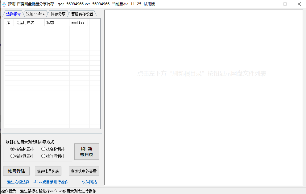 3、可以多帐号切换操作,无需每次都登陆(cookies列表中鼠标右键切换)。